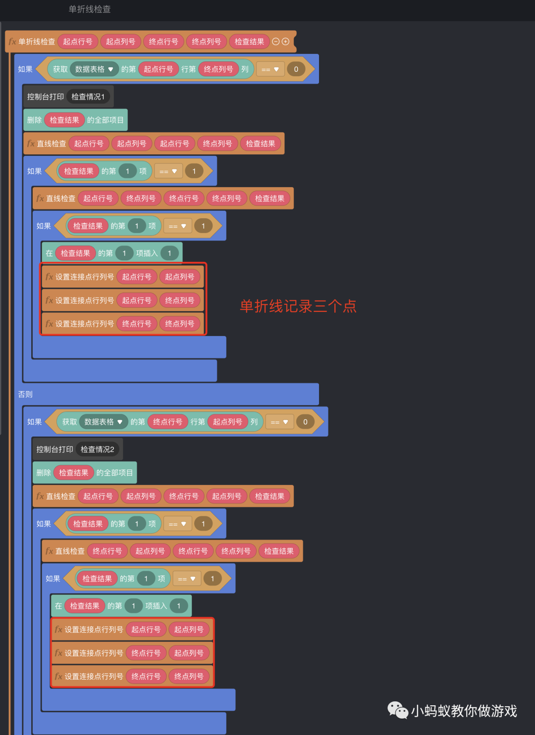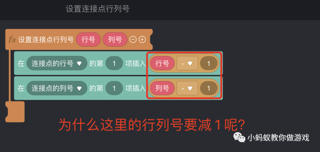 最后,再来看一下“设置连接点行列号”的积木逻辑。