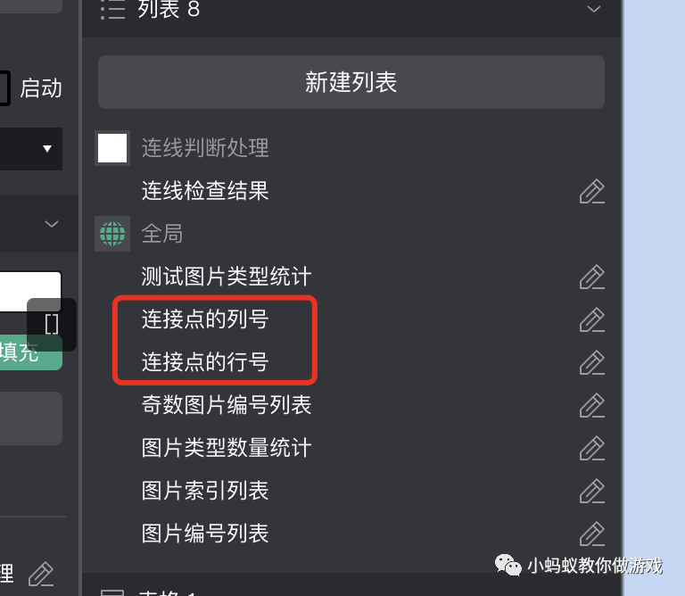 接着删除之前添加到“连接点行/列号”列表中的数据。之前为了测试我们增加了固定的数据,现在我们要根据玩家的选择设置连接点数据,所以要将其清空。