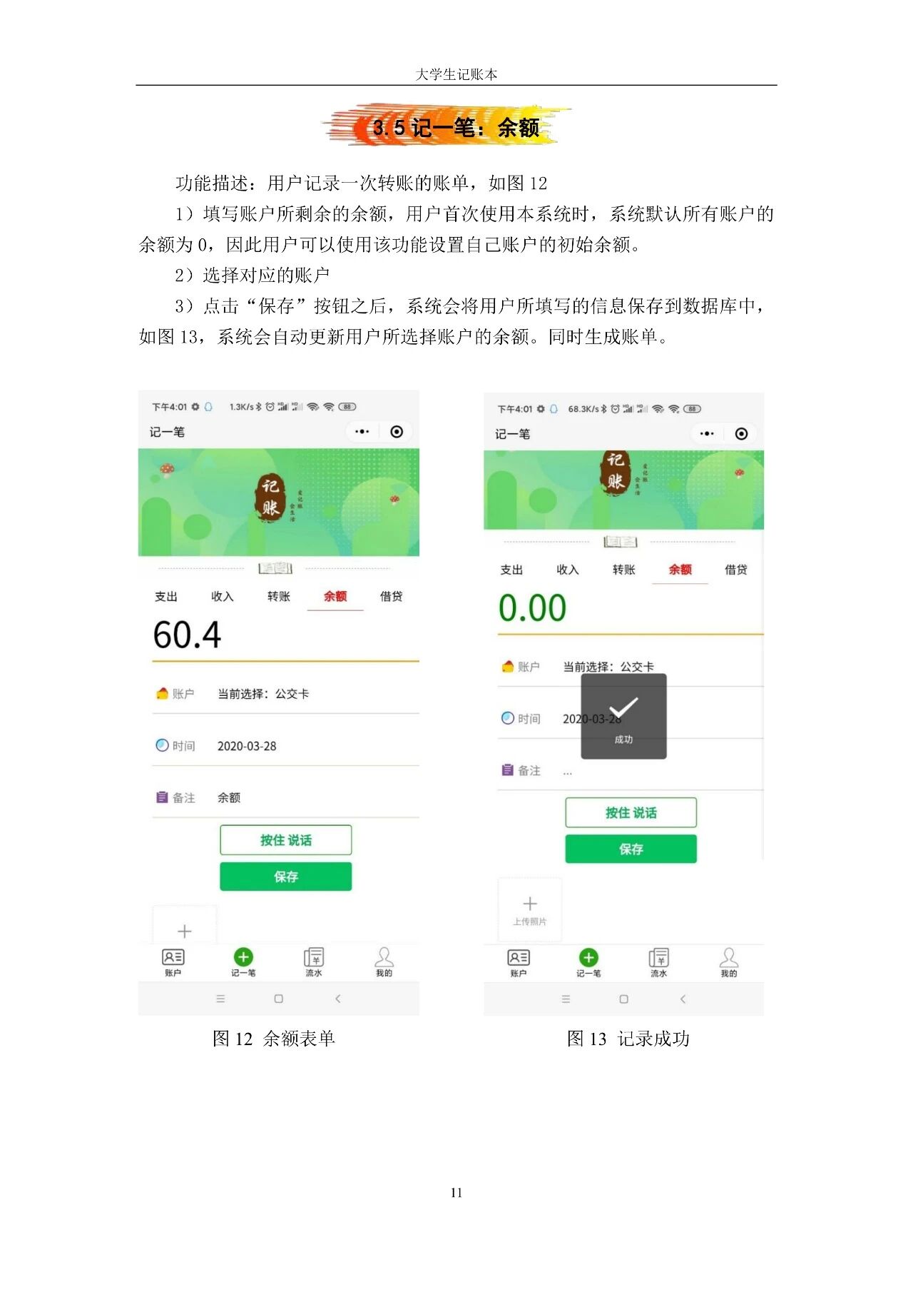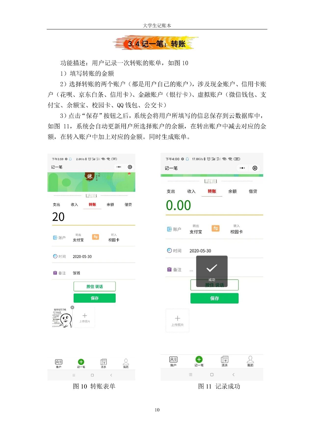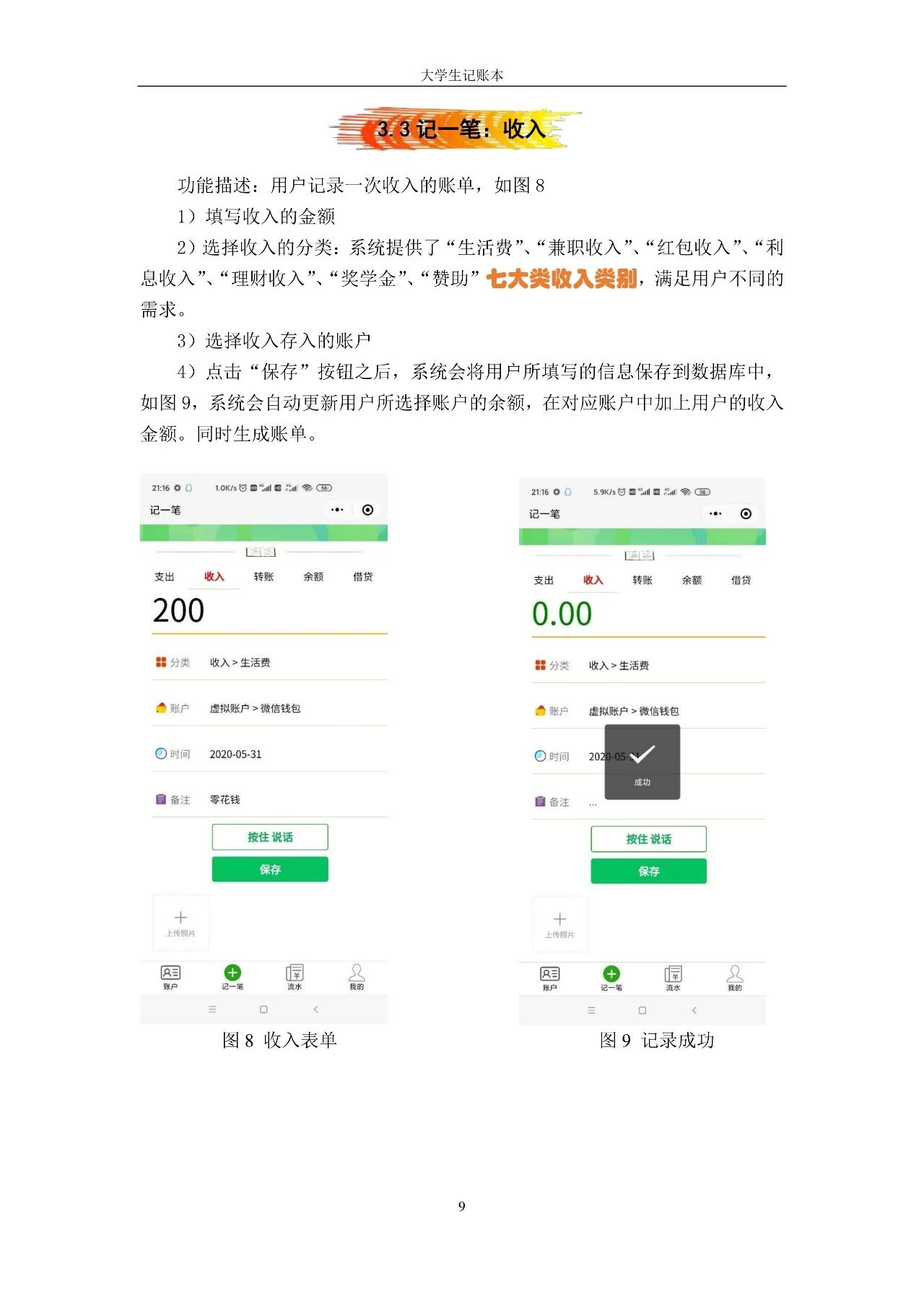 系统提供支出、收入、转账、余额、借贷五大记账模块,内含多种情景账本,涉及食品、交通、购物、宿舍、娱乐、学习等各种针对学生的场景,以满足不同时期的记账需要。用户可以实时查看自己的账户余额和所有账单记录。本小程序已经上线,欢迎扫码体验。