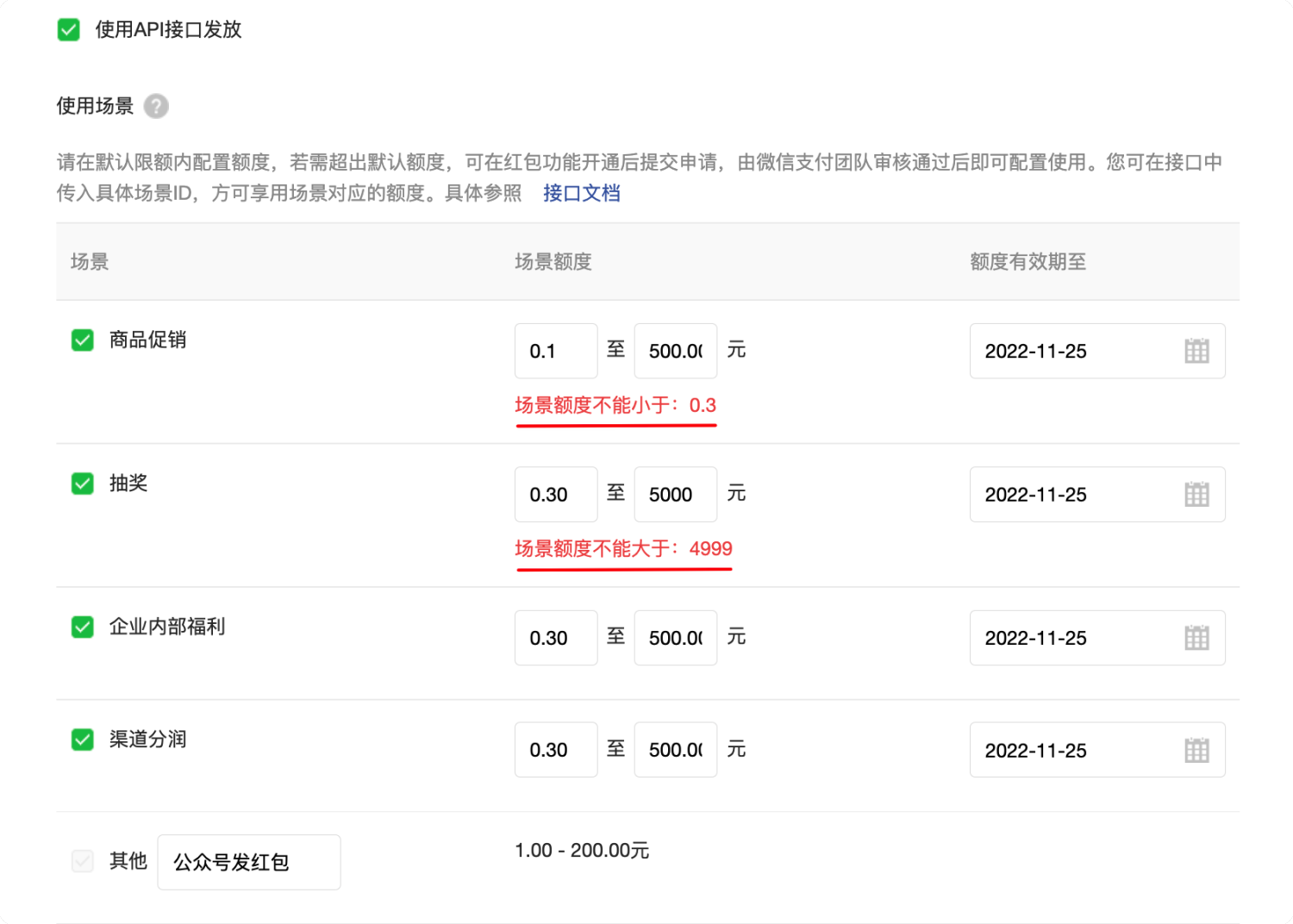 - 调整后的红包额度仅支持通过APi接口发放;