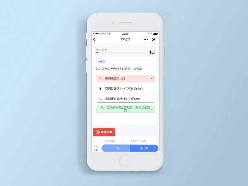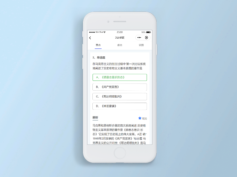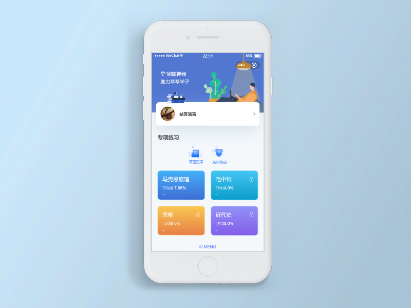 然后在一次的机缘巧合,刚好那时候,我的朋友跟她的研究生小伙伴,她们也想做一款政治刷题小程序,然后一拍即合。