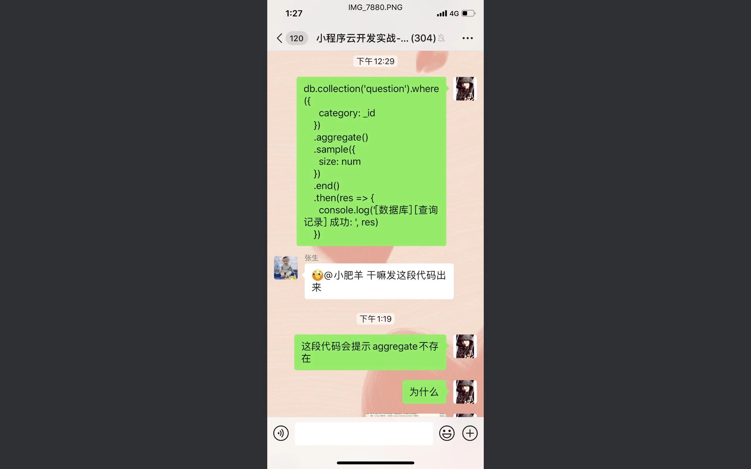 db.collection('question').where({ category: _id }) .aggregate() .sample({ size: num }) .end() .then(res => { console.log('[数据库] [查询记录] 成功: ', res) })