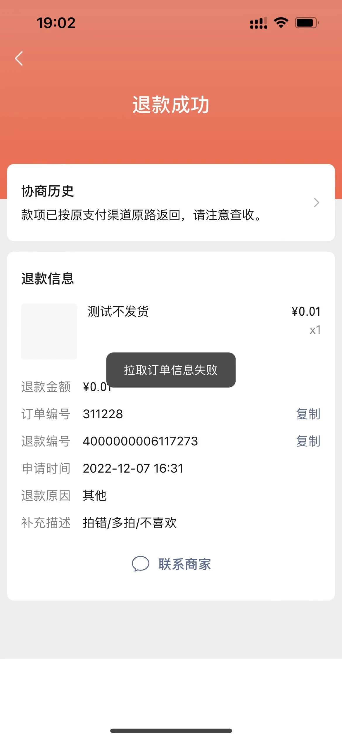2.6.2.5 Q:调用自定义交易组件“同意退款”接口shop/ecaftersale/acceptrefund时报错“同意退款失败” {“errcode”:9700209,“errmsg”:"同意退款失败 退款失败“}