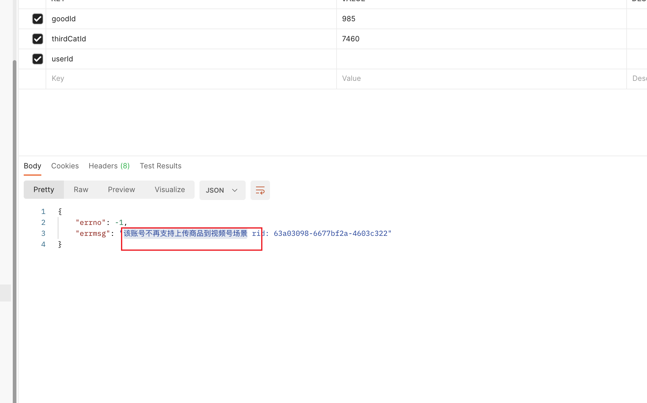Tencent error response, error code: 1000057, error message: 该账号不再支持上传商品到视频号场景 rid: 63b66bd2-67701826-0a0a0f33.