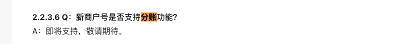 Memory 帖子提及的 2.2.3.6 Q:新商户号是否支持分账功能?