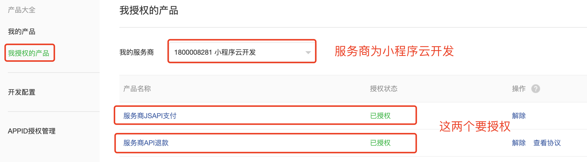 jsapi 和 api 退款权限授权:登录微信支付商户平台-产品中心-我的授权产品中进行确认授权完成授权后才可以调用微信支付相关接口能力。如果你在你的产品中心看不到我的授权产品,可以点击链接:授权产品