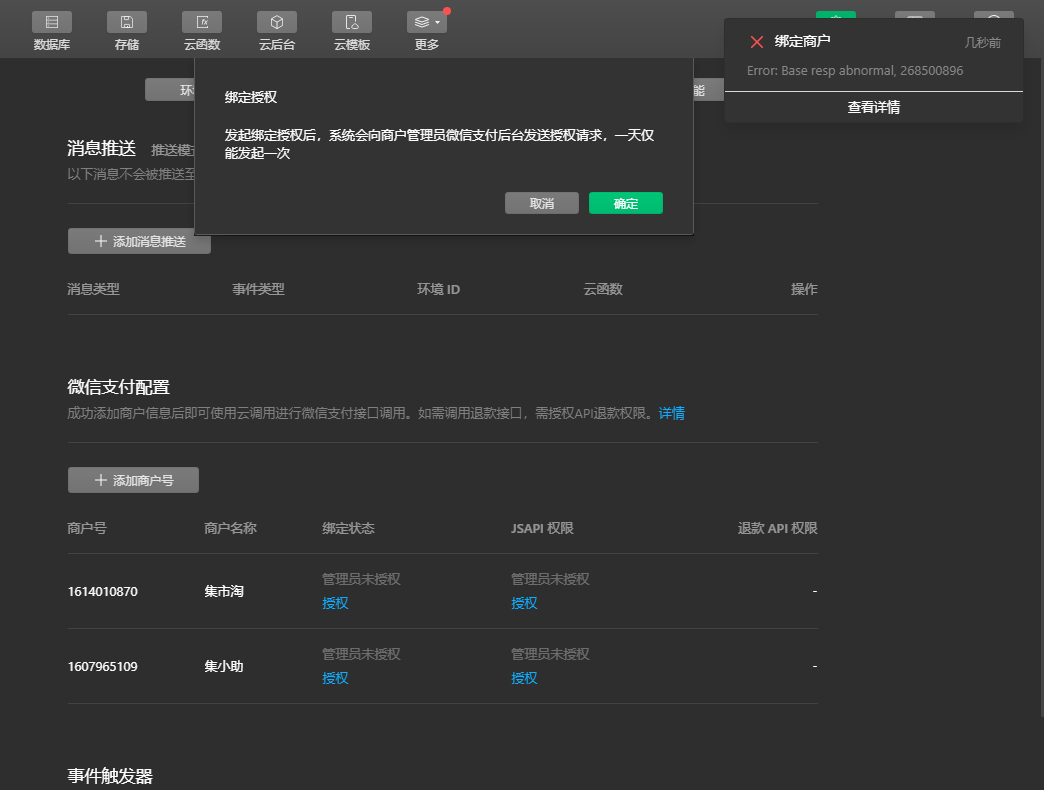 近期发现不少同学不知道如何确认云开发微信支付的授权,这里写一下解决方法: