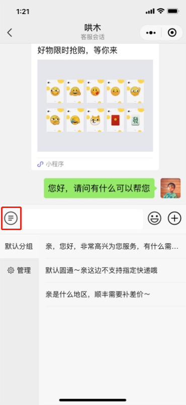 2. 移动端快捷回复