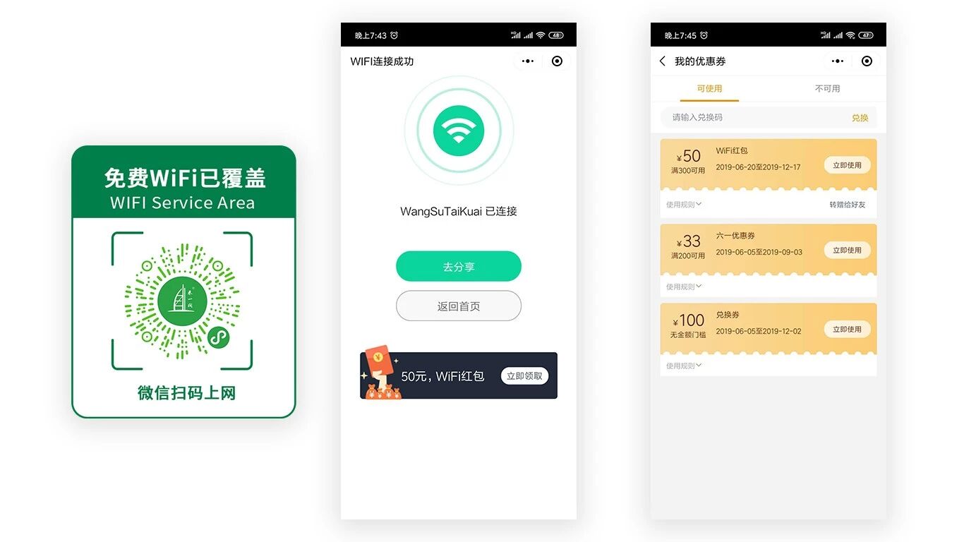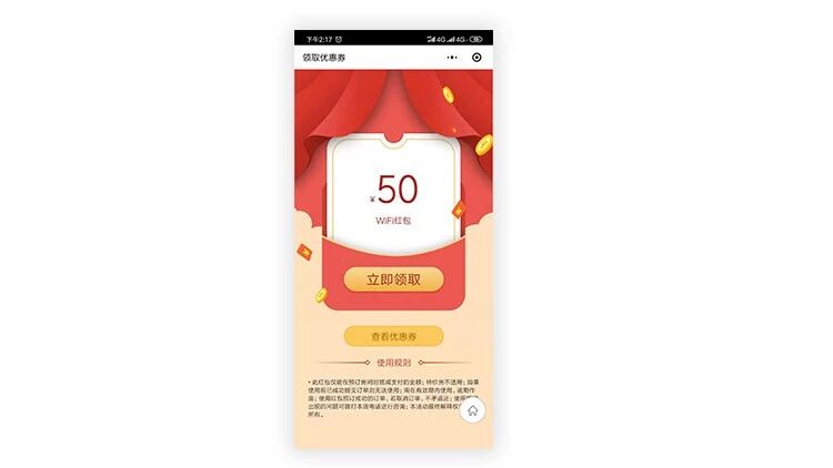 除了连接WiFi,在连接过程中还有WiFi红包可领。方便锁定客户下次再来。