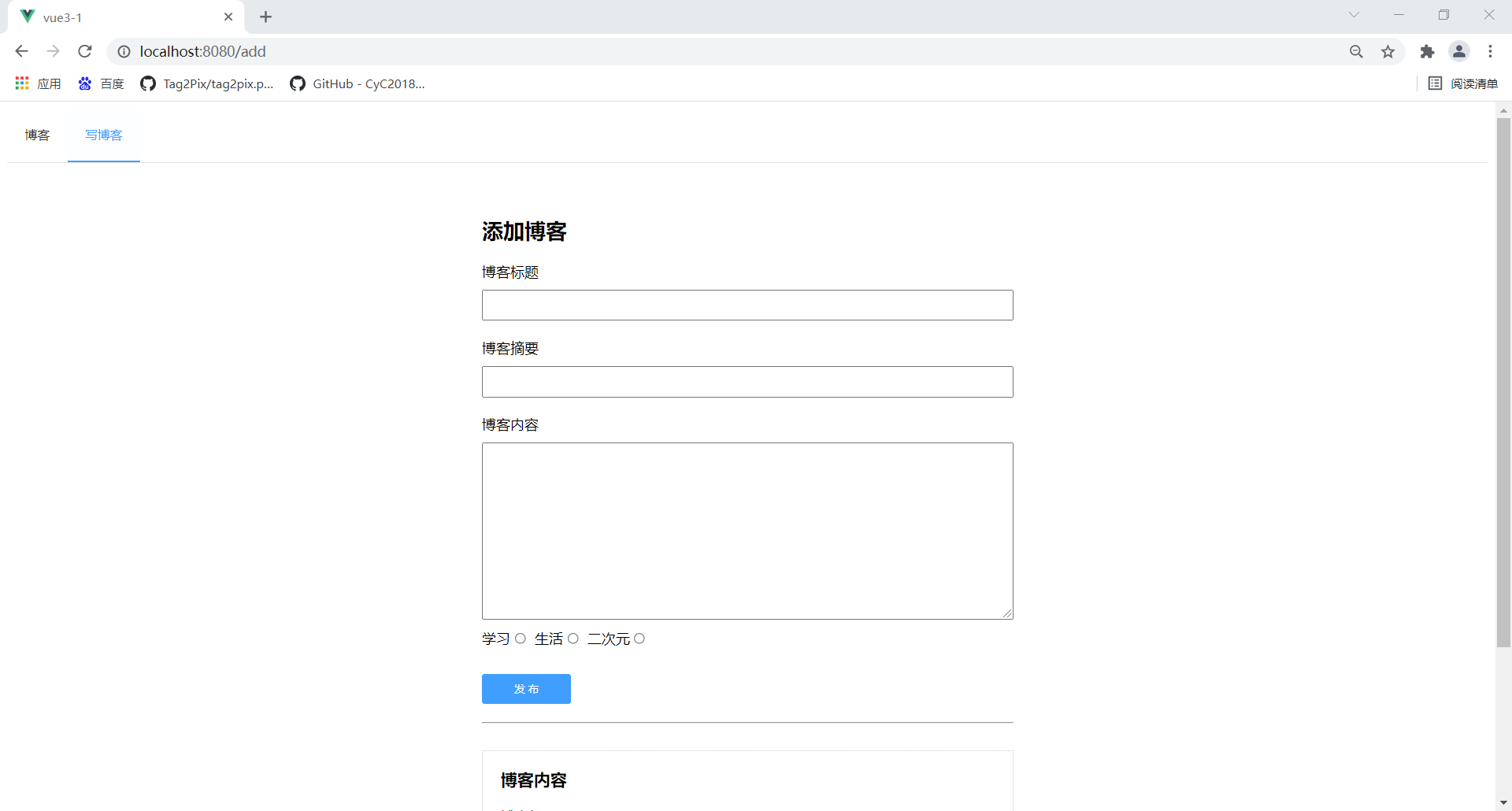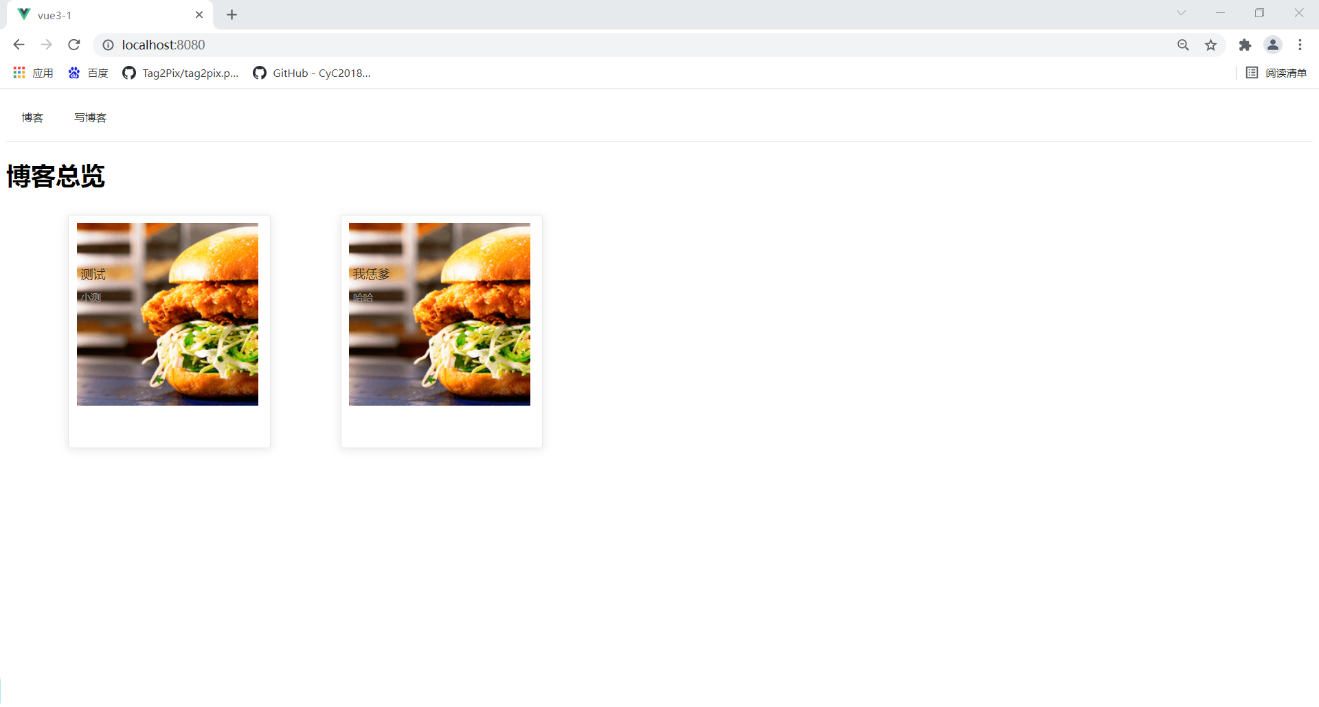 首先需要配置vue3的环境以及脚手架vue-cli4,网上教程很多,对着敲一下很快就可以搭建一个项目目录出来。跟着视频(https://www.bilibili.com/video/BV1T4411W76J?p=1)敲了一版最基础的博客界面,视频中开发用的是vue2.x,而最新版vue已经是3.x,一些语法和函数已经做了更新,对敲的过程中需要搜索一下3的替代语法,还算是比较容易的。博客初代是一个前后端分离的项目,前端采用vue3+elementui,后端暂时使用的是leancloud(也许之后学学后端可以自己搭一个),但是leancloud还是非常好用的,数据可视化非常直观,调用接口仔细阅读文档就能掌握),设置了一个vue-router切换[博客] [写博客]两个界面,写博客包含博客标题、博客摘要、博客分类几个部分,点击发布将数据传至leancloud。博客展示页使用了elementui的card,但还不是本当上手,做的比较粗糙,暂时仅测试是否能从后端获取到数据,图片小汉堡是elementui默认的hh。初代大概做成这样就下班咯~