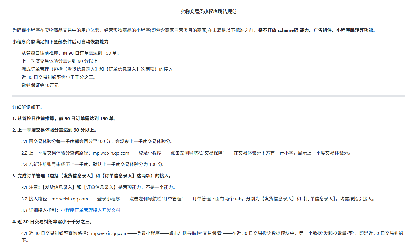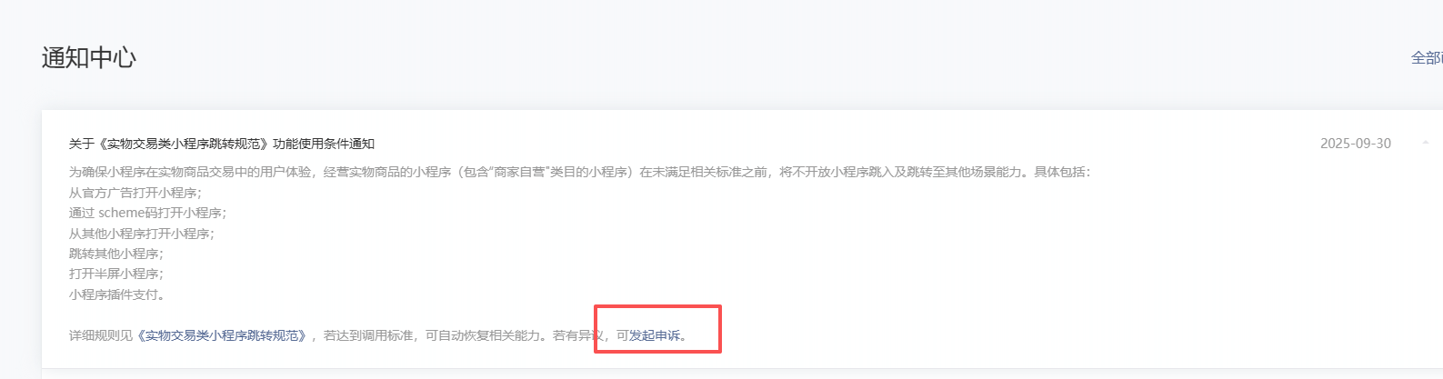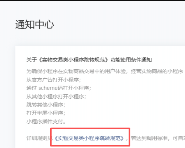 到这里点击《实物交易类小程序跳转规范》公告,点开看看内容,现收集到两种:
