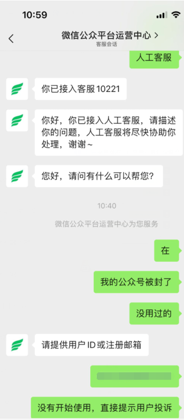 所谓的《微信公众平台运营规范》我也阅读了几遍,并没有发现违反的地方,问这个客服10221也没说违反了哪一条