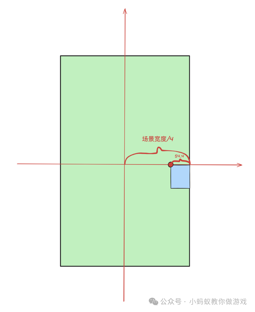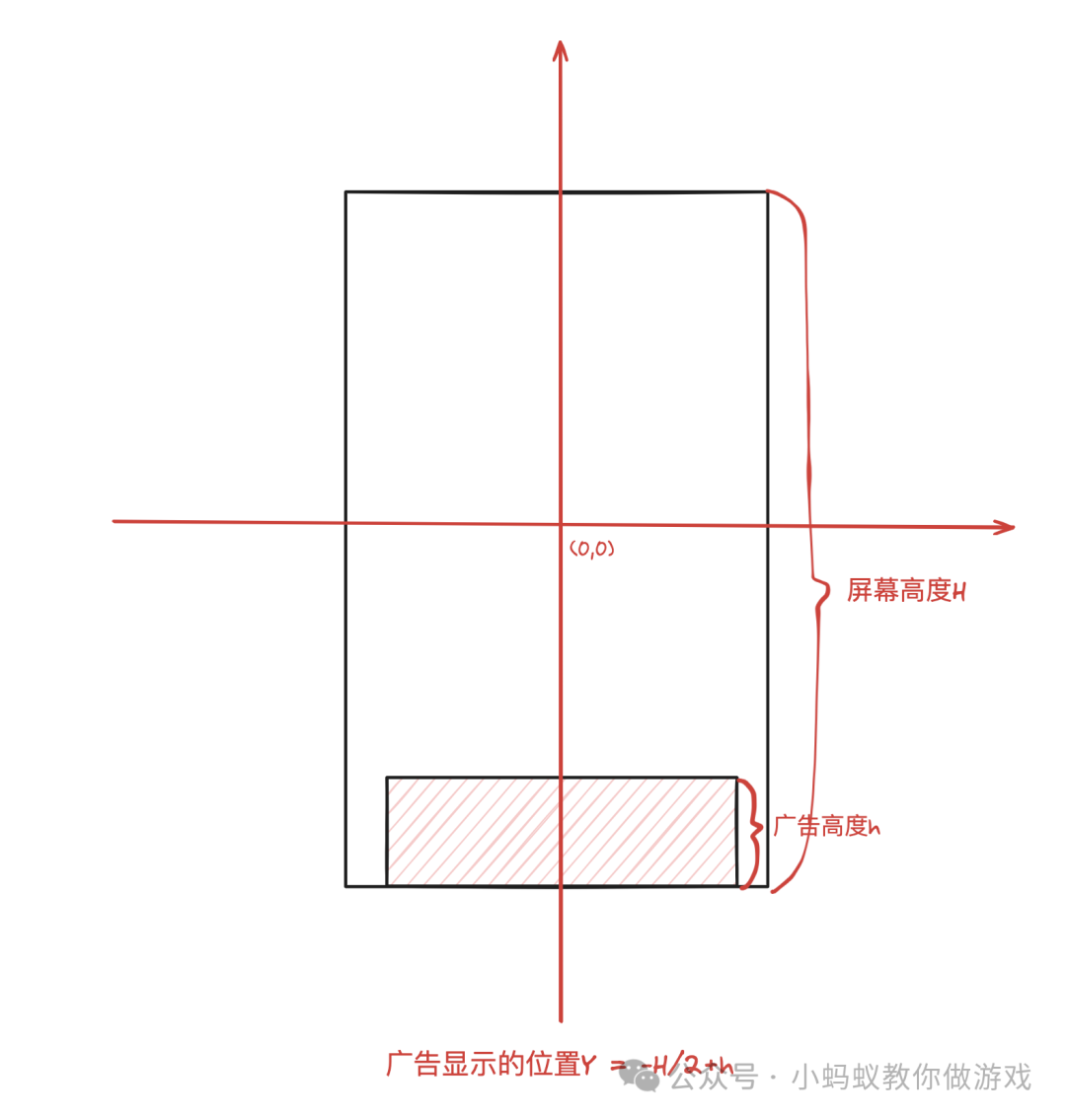 已知广告的宽度,高度和场景高度,可计算出广告的 X 坐标 = -162,广告的 Y 坐标 = -场景高度/4 + 95.4。