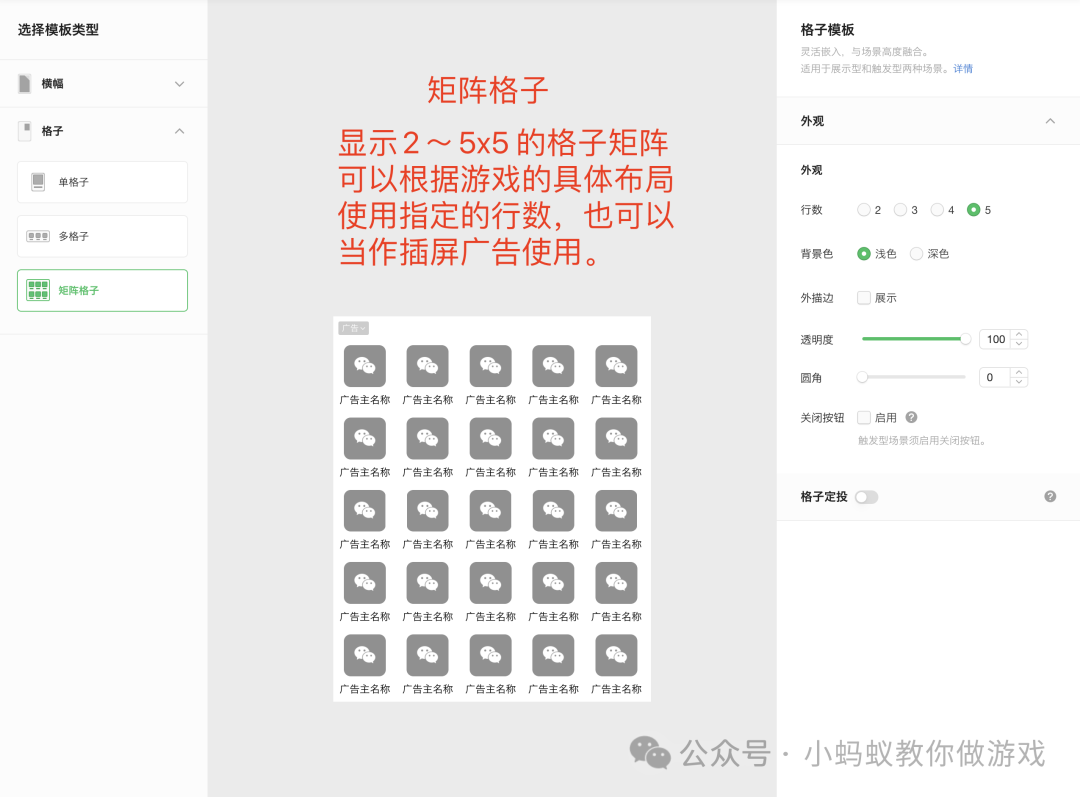 微信小游戏制作工具目前已支持所有类型(单个格子,单行格子,格子矩阵)原生广告的添加,这篇教程会详细的介绍原生广告的接入方法。