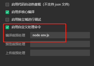 发现开发者工具有自定义处理命令的功能,在编译前可以对文件预处理。