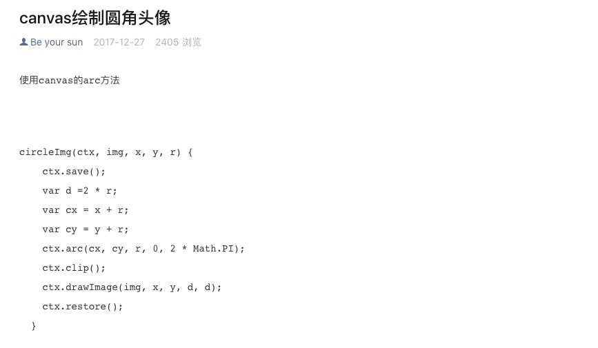 ctx.clip(); //画好了圆 剪切 原始画布中剪切任意形状和尺寸。一旦剪切了某个区域,则所有之后的绘图都会被限制在被剪切的区域内 这也是我们要save上下文的原因