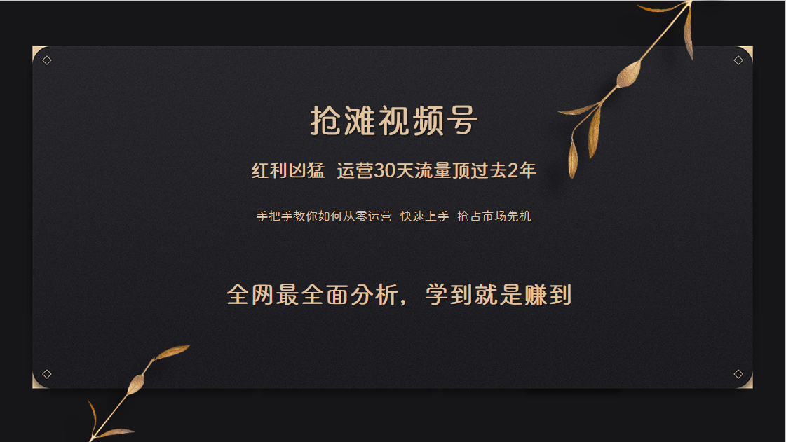 所以现在抓住视频号的机会还不算迟,只要你有信心去操作,还是可以有机会抓住这波红利期的。