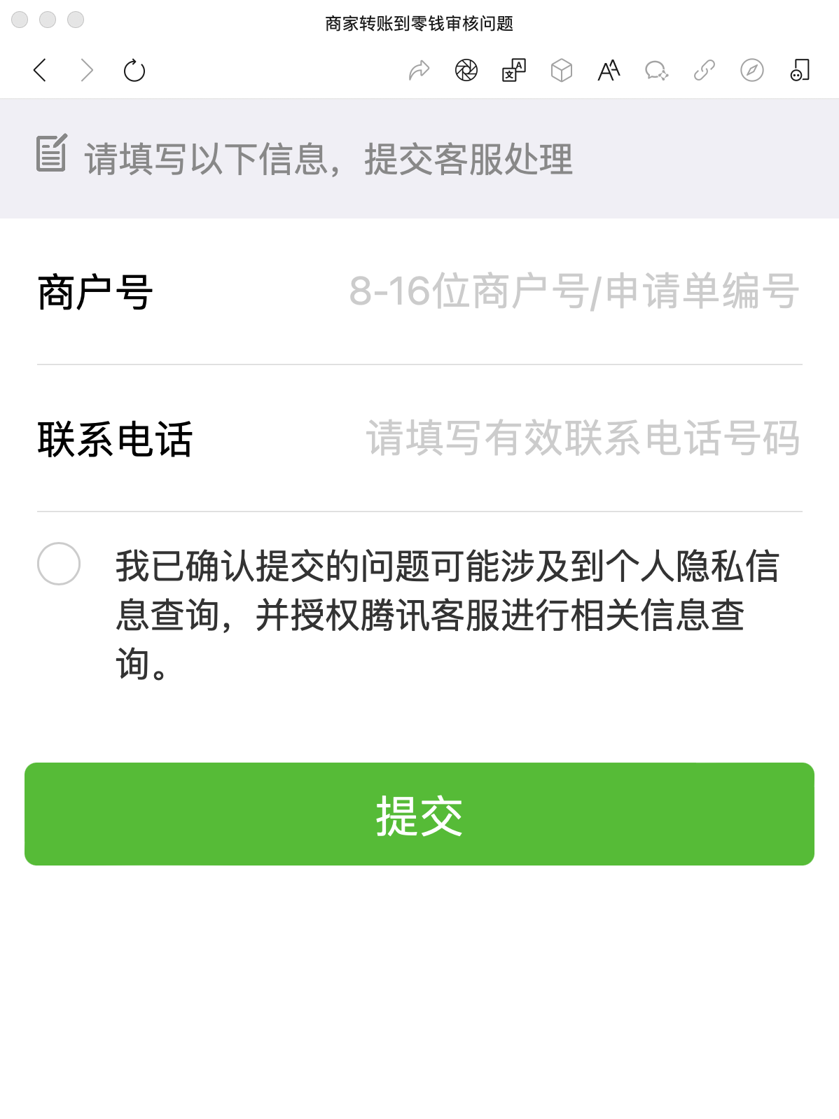 发完之后,客服给我了一个链接填写商户号和联系方式