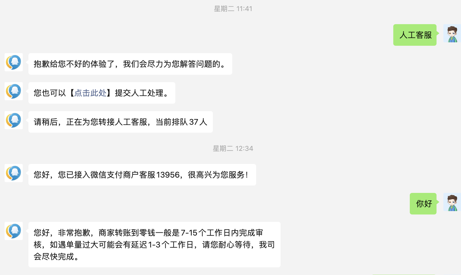 在微信开放社区看到很人【商家转账到零钱】超过了7-15个工作日没有回复,还在审核中,遇到这个问题怎么解决呢?我最近正好在申请,这篇文章我就要讲讲我是如何找到客服,并且得到反馈的。
