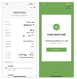 微信支付团队会在 1-2 个工作日内完成审核,若审核通过,签约消息会通过公众号/服务通知推送至申请者微信号,在线签约后,即可开通收款商户号,并获得交易权限。