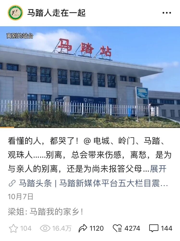 以上是视频号作品传播的途径与技巧,你有知道这些吗?当然,一个作品要想获得用户自动转发分享,作品创意要好,还要能引起用户内心的共鸣,如果做到这两点,播放量也会暴发 。小编之前坐高铁,随手拍了个视频,短时间内,居然播放量超过16+万,实在是想不到,视频素质拍得也是一般,就是坐高铁时随手拍的场景,主要是背景音乐配得好,还有就是它表达的意境。主要表达的是一个外出打工者,在别离家乡时的依依不舍,同是也为自己在他乡工作多年而一无所成,还有因为能报答父母的养育之恩,内心感动无比的愧疚,别离,总会带来伤感,可是为了生活,不得不到远方去工作,视频细细嚼来,耐人寻味。