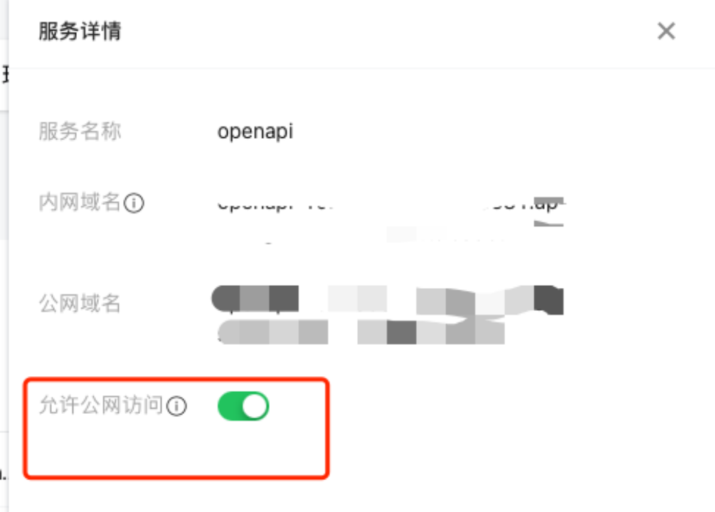 小tips:大家在使用OpenApi接口的时候测试开发中可以把公网域名访问打开,线上环境启动内网访问就可以,这样相对比较安全。因为你调用OpenApi的接口不再像之前需要换取Access_Token啦,公网暴露风险大。