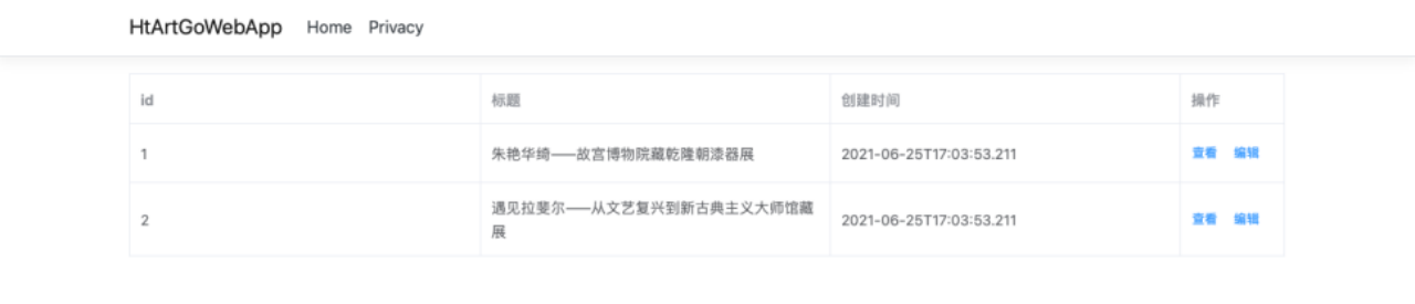 呈现出来的页面如下所示,以后再把CURD相关操作添加上:
