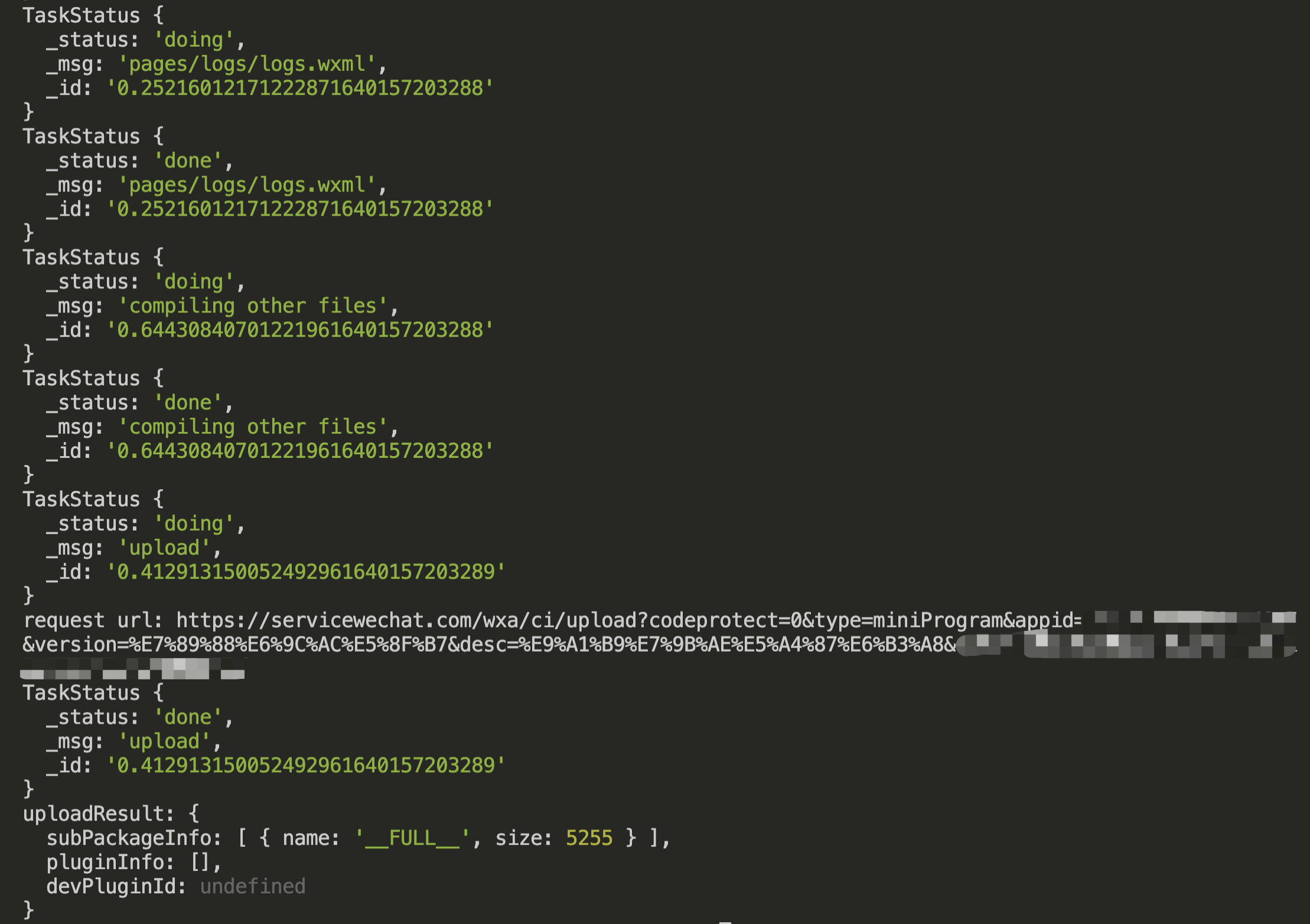 修饰后的控制台输出,如下截图,有点打包上传的那味了😛。