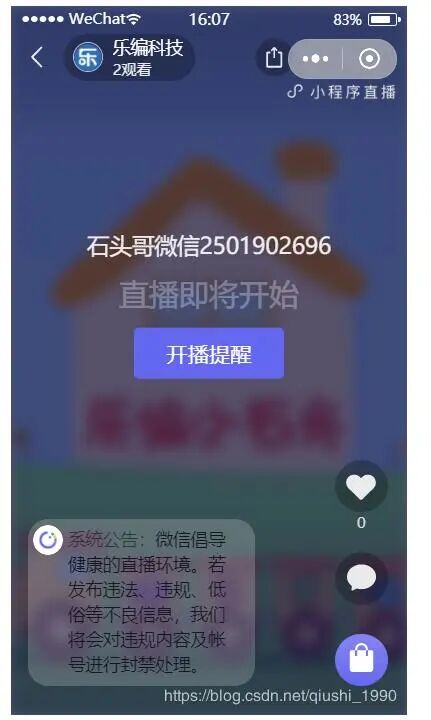 未开播状态,这里我们可以订阅开播提醒,等开播的时候,会有订阅消息提醒。