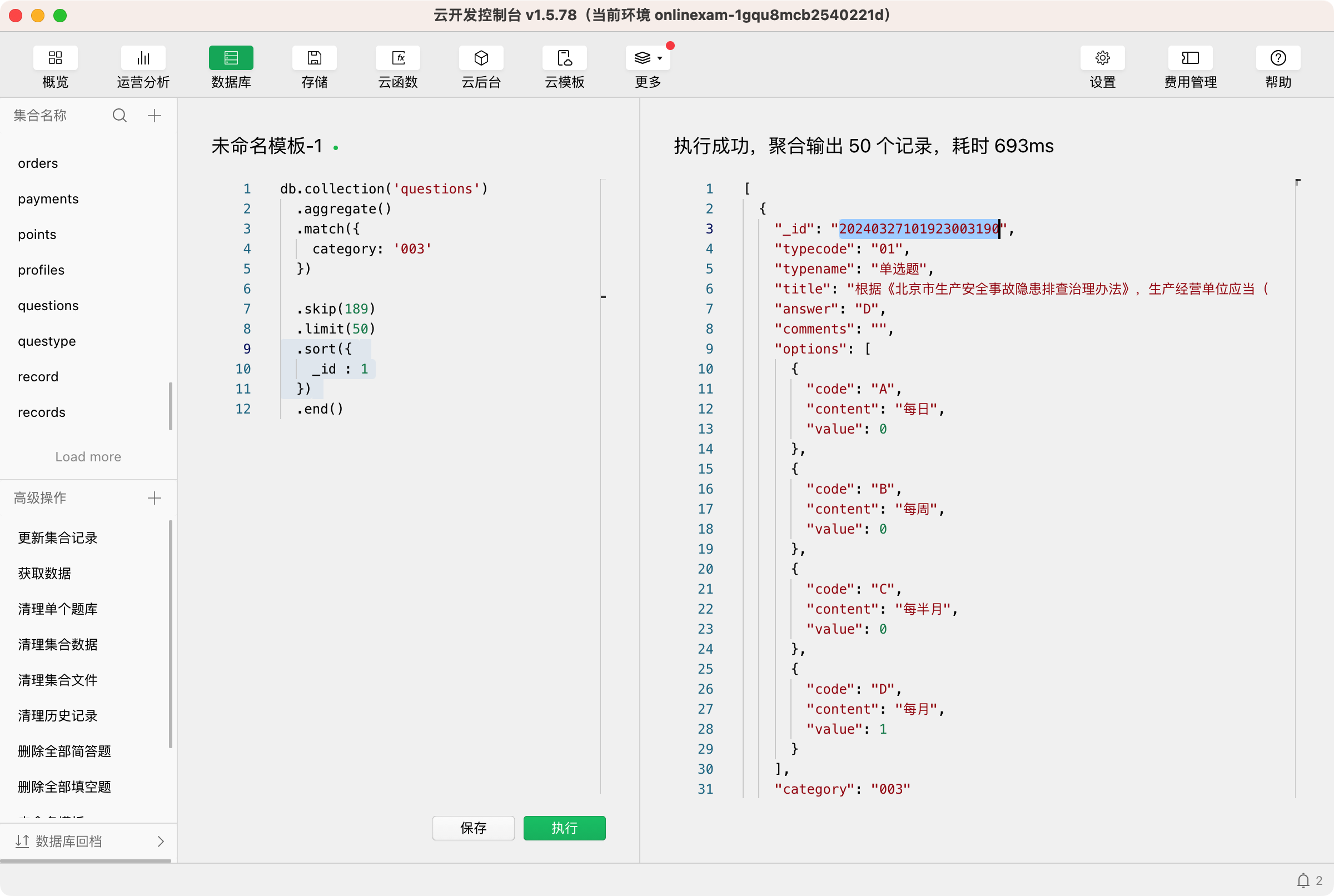 集合的_id是字符串类型,我是安排时间+序号拼接的,当时考虑的时候也觉得没有哪个题库会有1000道题,所以在设计的时候,序号就给了3位数,