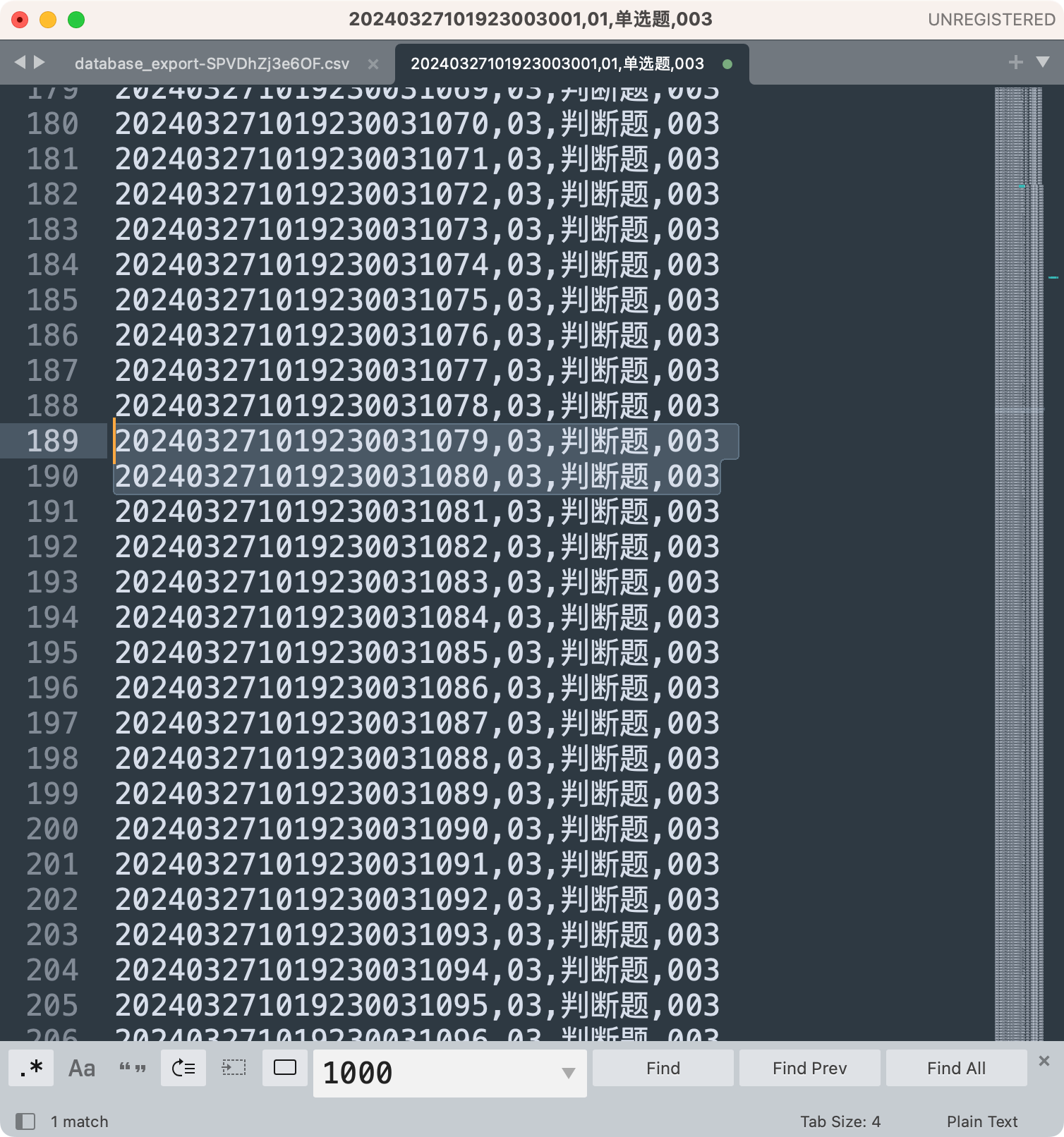 0~189,其实用户做了190个题,下次从第191个题开始,也就是下图的1081题