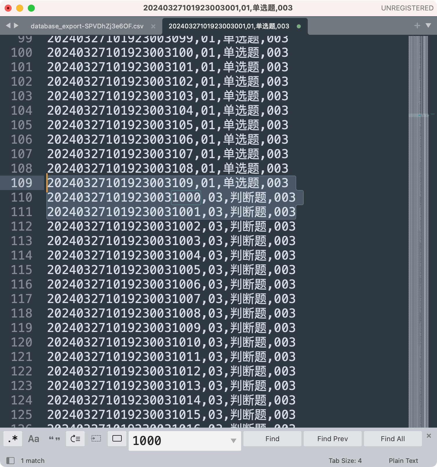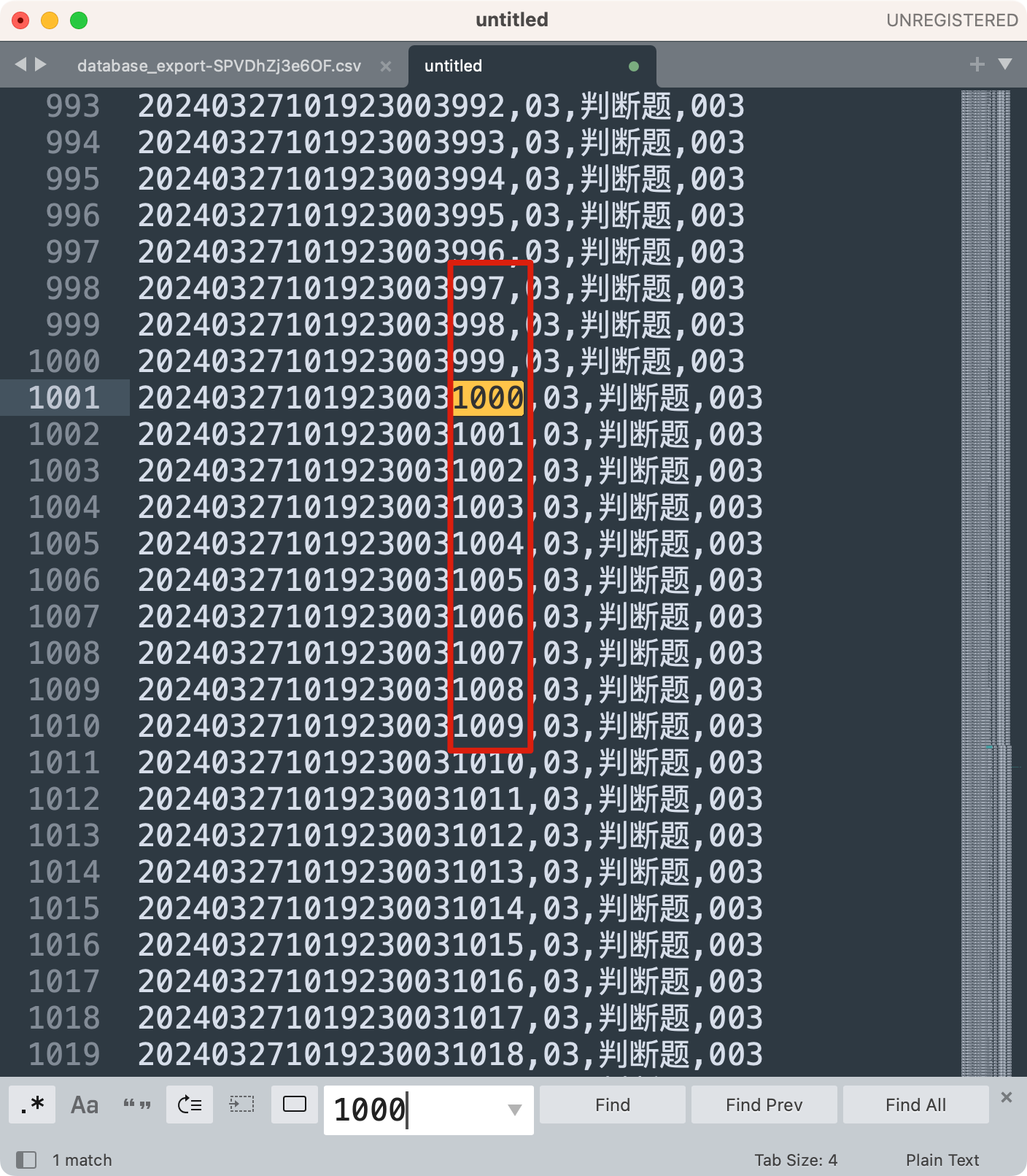 这样就存在了一个问题,当我们的题库多余1000道题目的时候,编号中的序号位,位数就不一样了,有 的三位数,有的四位数