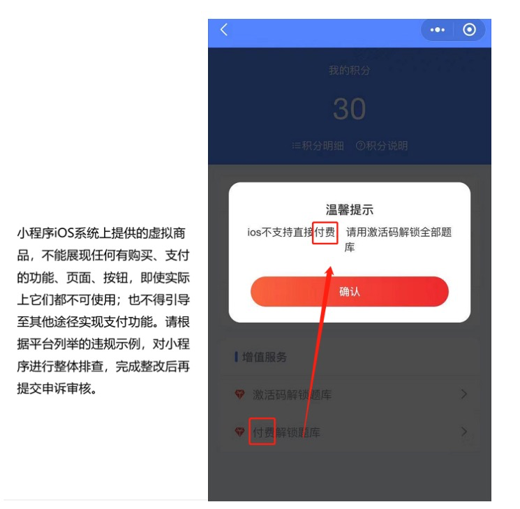 说我的某个答题小程序存在虚拟支付违规了,但是我印象中,只有测试的时候我才会在ios端打开支付开关,生产环境是不存在虚拟支付的,我核对了下,目前线上确实不存在虚拟支付