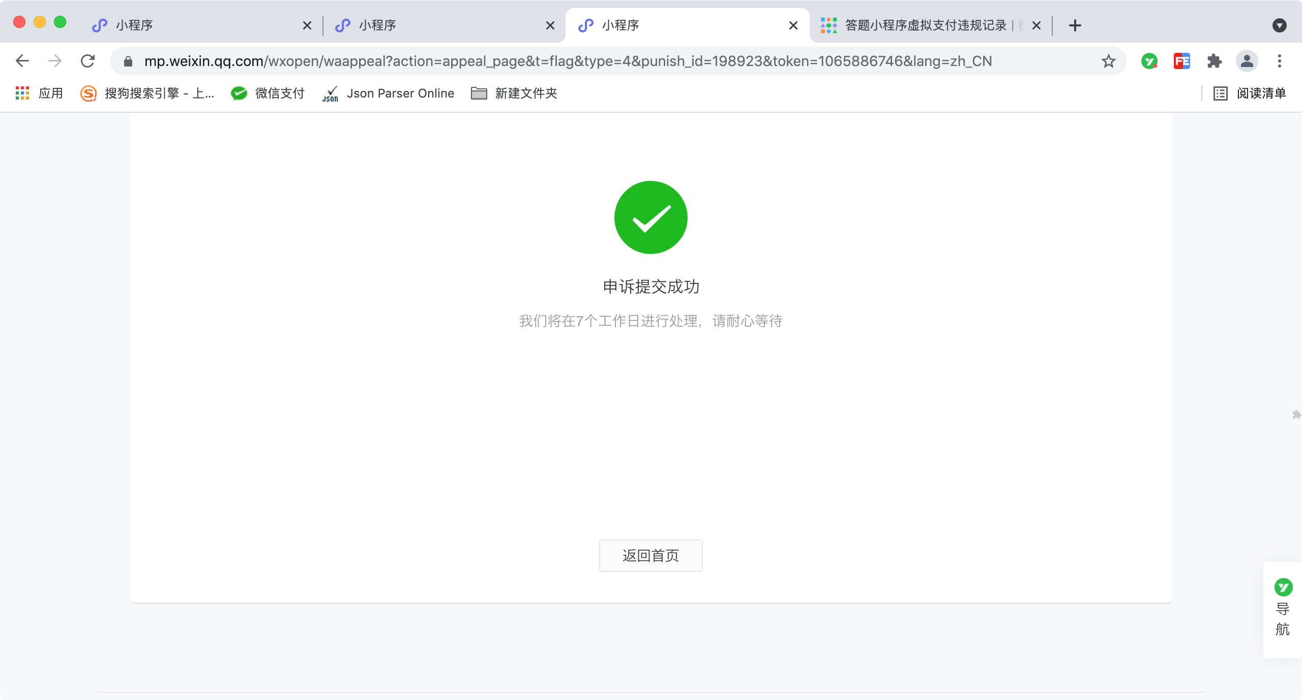 申诉提交成功