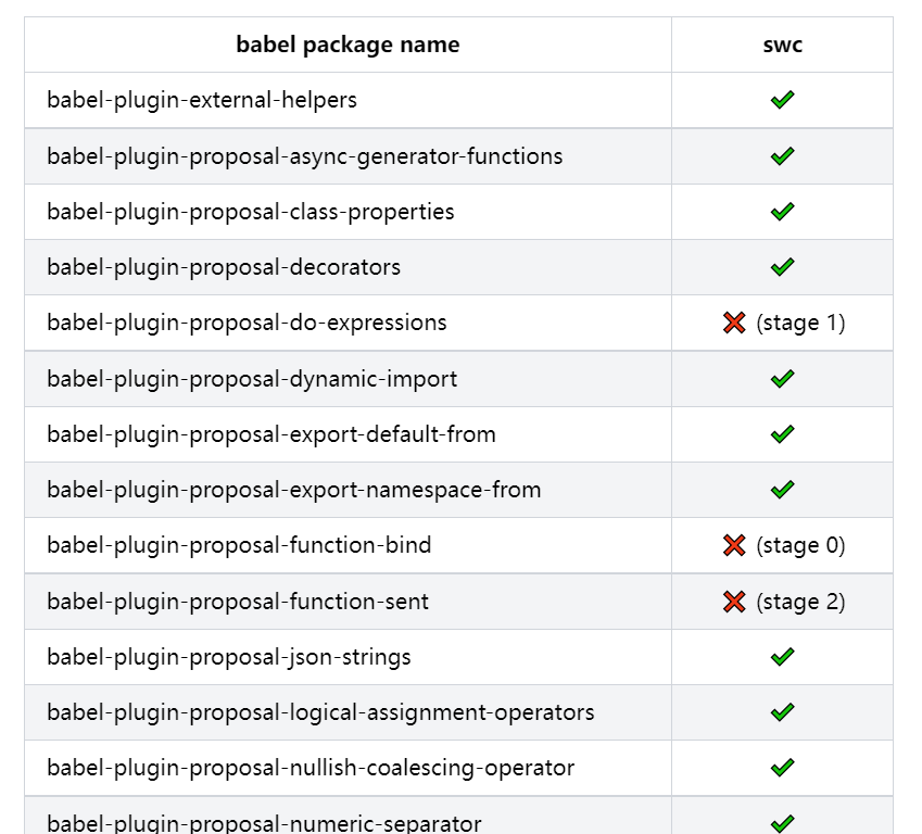 swc官方对比链接: https://swc.rs/docs/migrating-from-babel