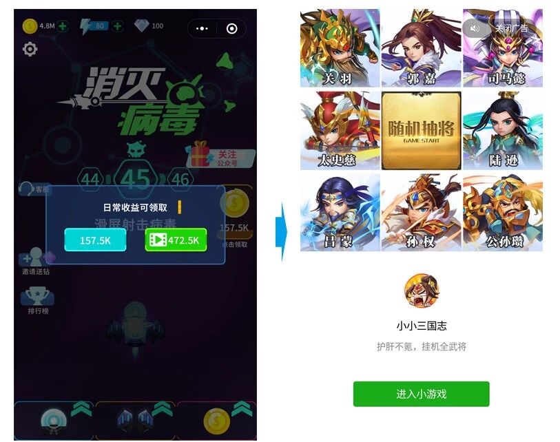 又比如课程类小程序,用户通过观看视频解锁新课程;再比如视频类小程序,通过观看视频广告获得VIP内容的限时观看机会;而对于小游戏,激励式广告还可以应用于积分/金币奖励、复活/通关/进阶、道具体验等多个场景。