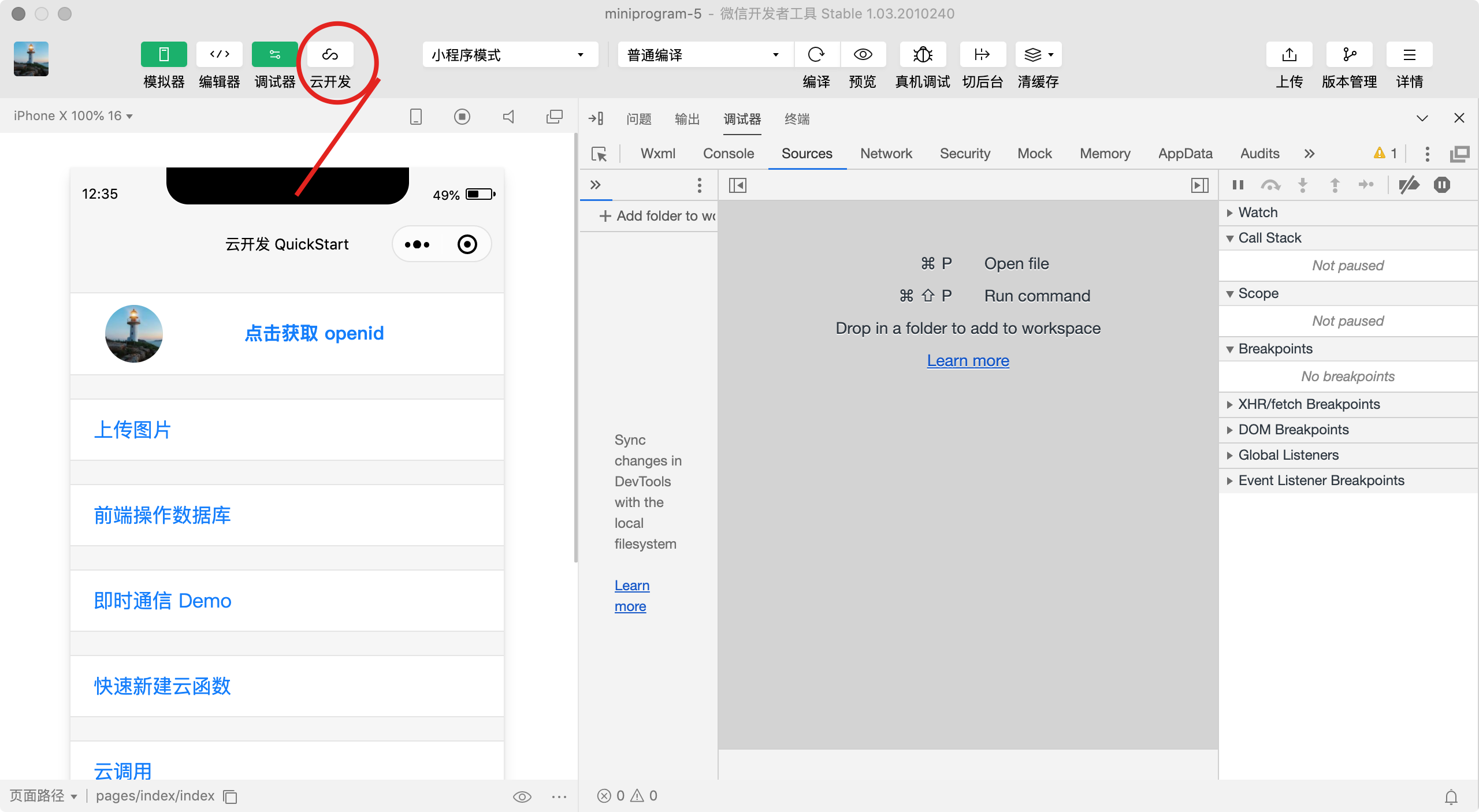 本文主要讲述如何 在微信开发者工具中打开云开发控制台