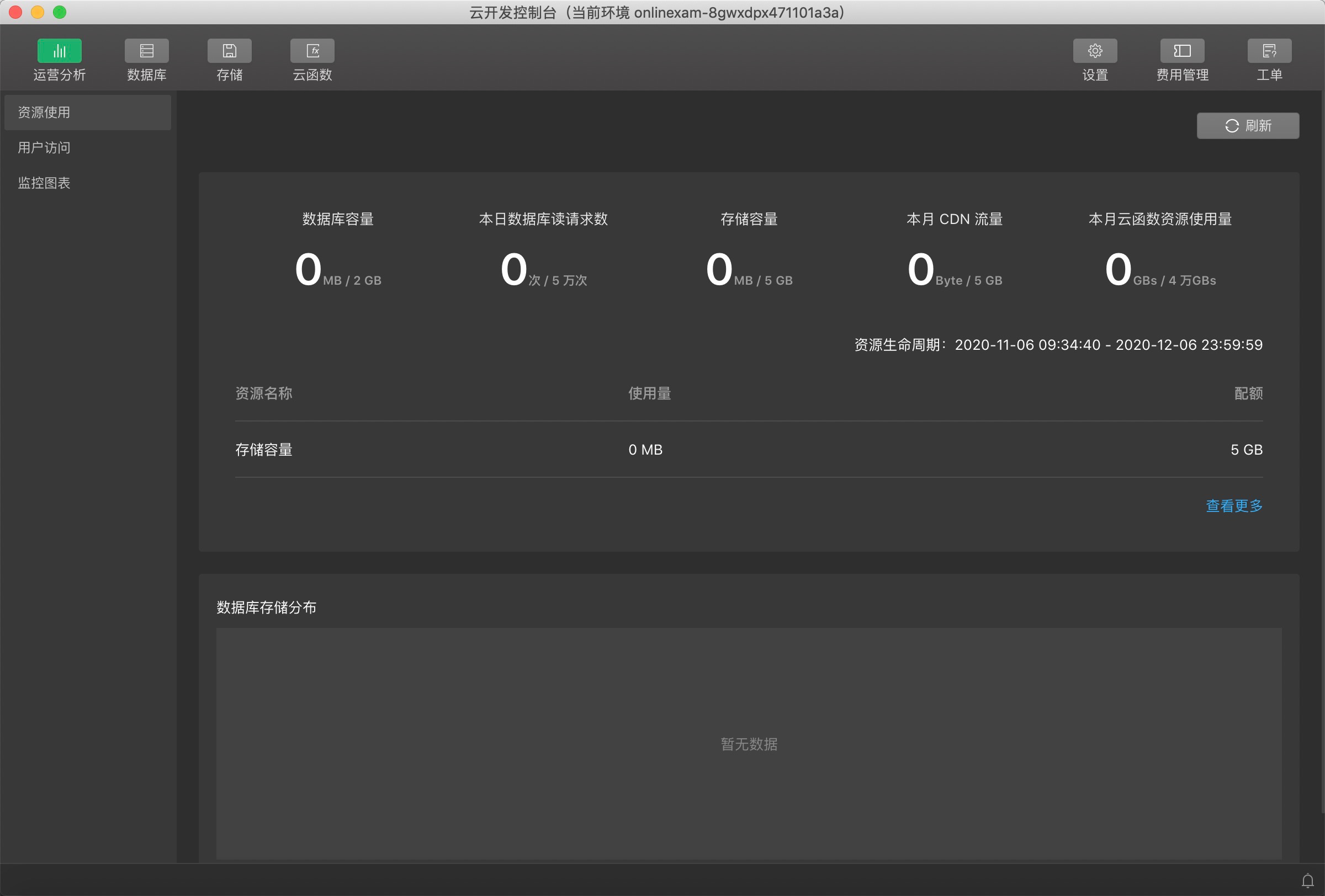 4)点击上图的云开发,进入云开发控制台,至此,如果看到类似于下面的截图展示,那么恭喜您,您已完成本文的任务