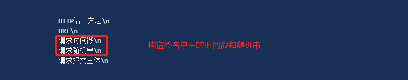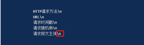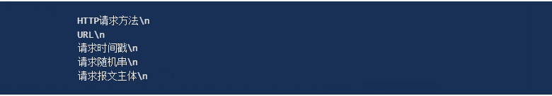 签名串一共有五行,每一行为一个参数。行尾以 \n(换行符,ASCII编码值为0x0A)结束,包括最后一行。如果参数本身以\n结束,也需要附加一个\n