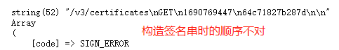 例如构造签名串中的JSAON中某个参数值带有中文,而实际在请求时的JSON串中的参数值传给微信侧是乱码,此种情况就会导致签名错误