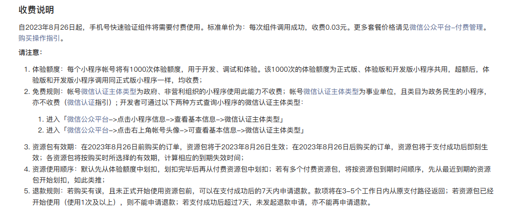 目前的获取手机号组件,将从 8月26号 开始,以 0.03元/条 的价格收费,每调用成功计数一次。
