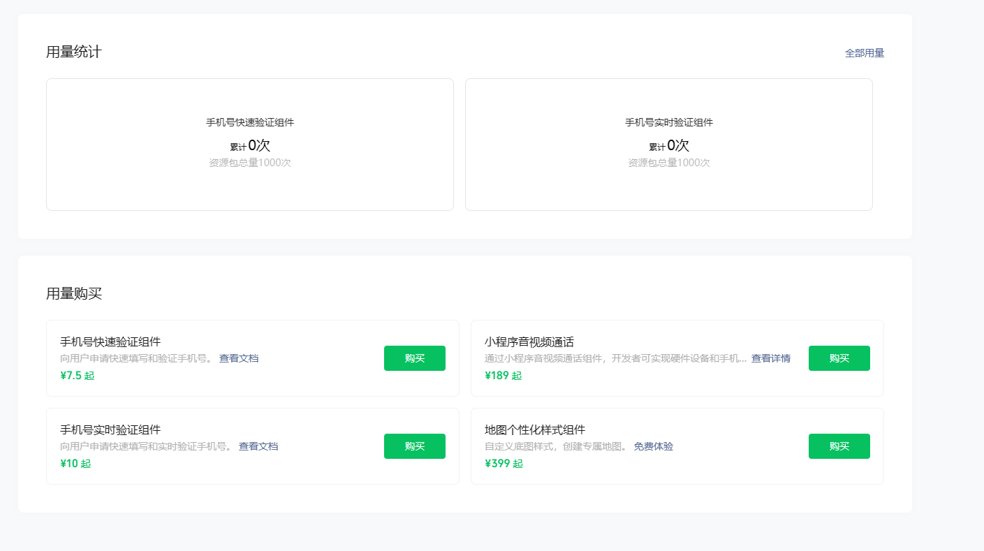 以上两个组件具体收费,貌似是可以按照套餐来购买的,具体方案可以在小程序后台的付费模块查看。