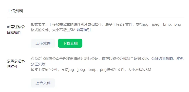 原公众号与目标公众号的主体证明文件(如营业执照、法人身份证等)。如果委托他人办理,还需提供授权委托书及代理人身份证。
