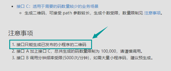 1,我使用接口B获取微信二维码,获取到的不是二维码,而是一个奇怪的链接,链接也打不开,不知道为啥。到处在网上搜也没有找到跟我这个问题一样的,我猜测唯一可能的原因就是小程序没有发布,所以不能获取
