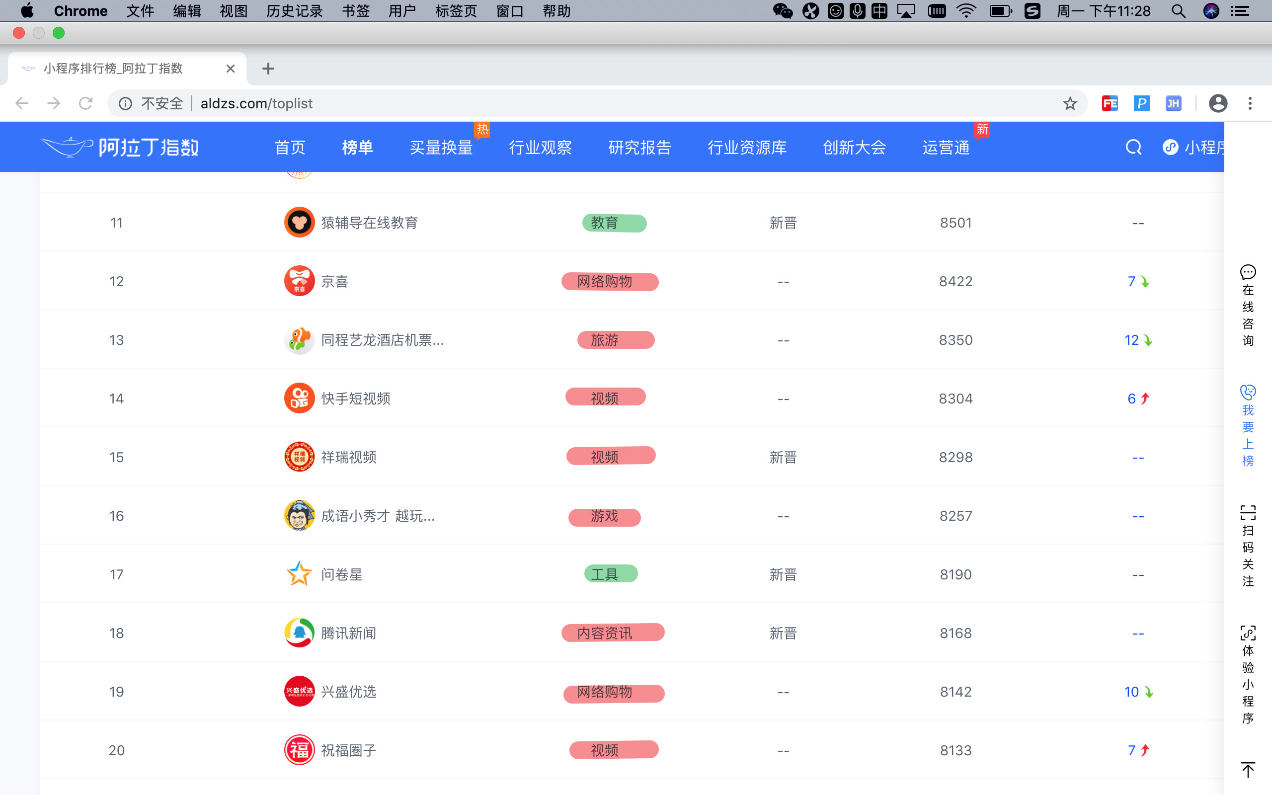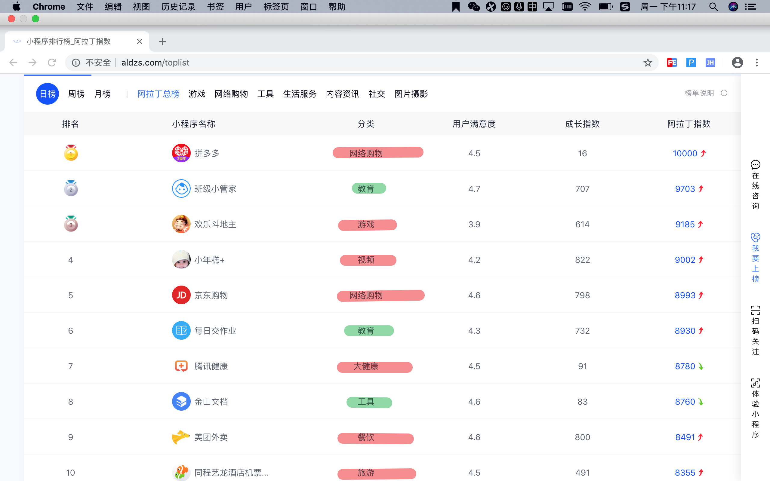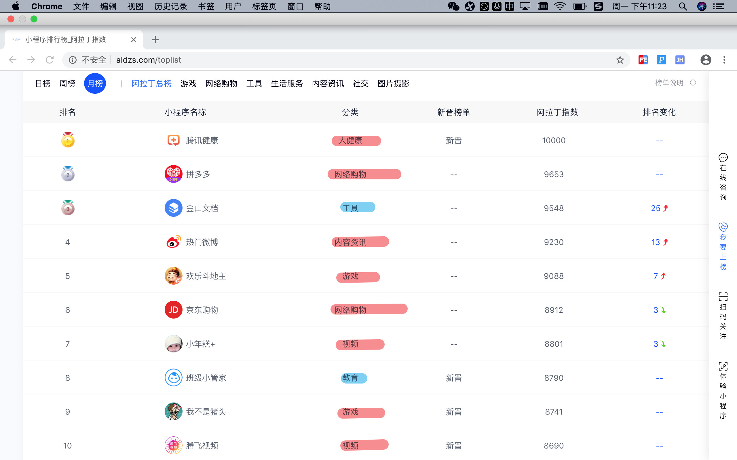 能给出教育类和工具类小程序的排名吗