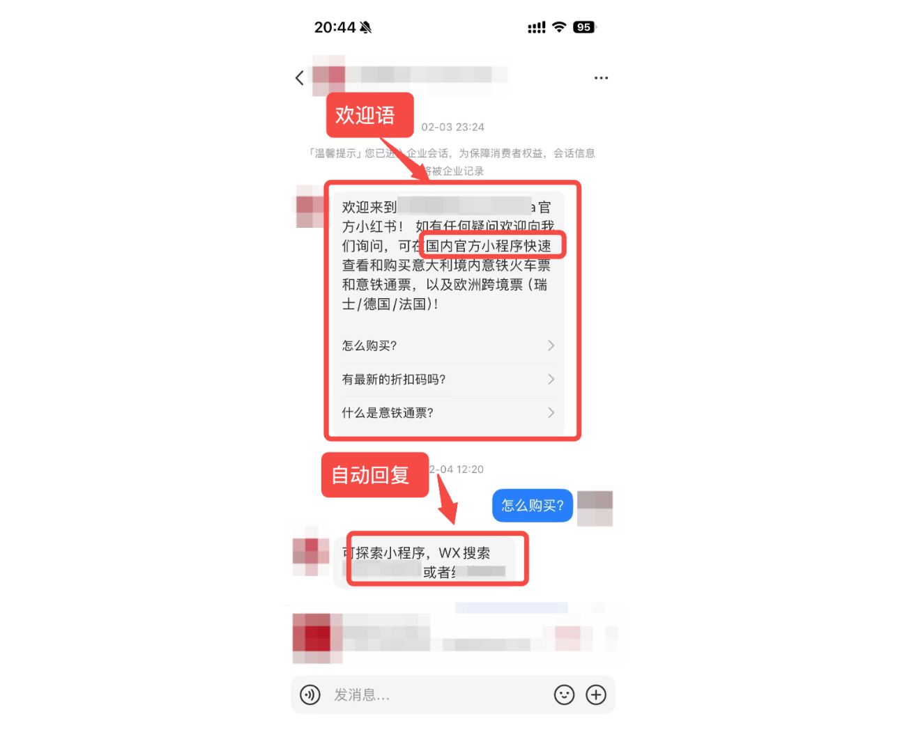 - 欢迎语+自动回复引导【注意该平台的相关要求】: