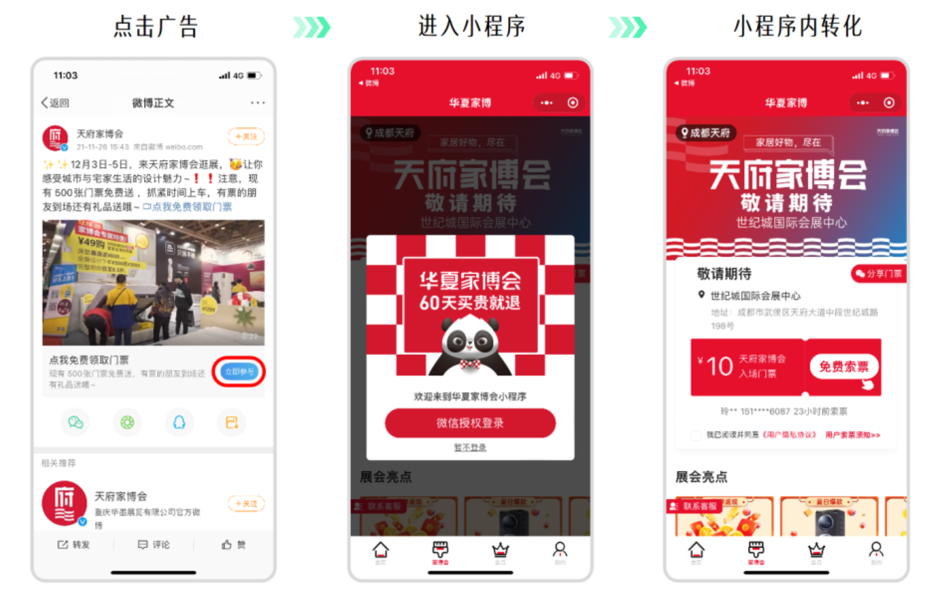 其他可以出现的点位以及相关配置流程可参考官方咨询:Sina Visitor System 和 超级粉丝通信息流广告跳转小程序功能升级