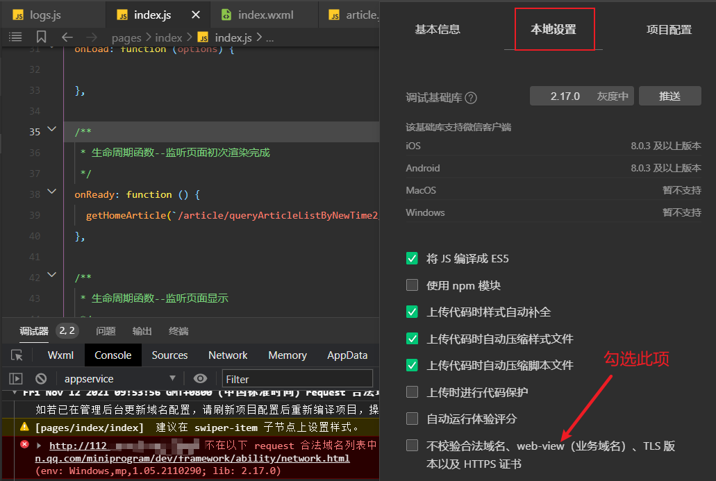 这里在小程序开发工具点击详情部分,勾选如图所示选项