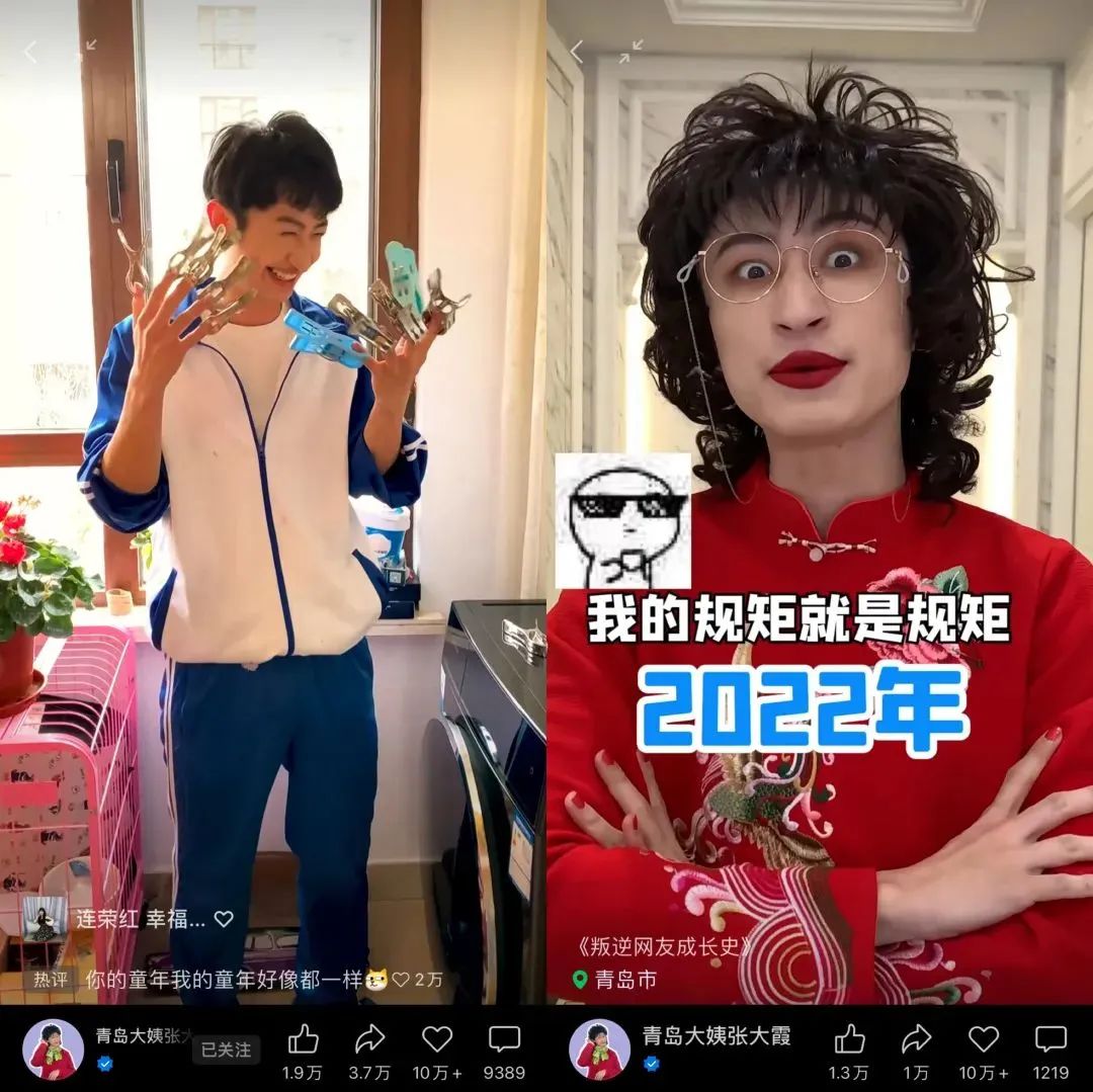 凭借着有趣、有共鸣的故事情节,亲切、反串的人物形象,「青岛大姨张大霞」在视频号上很快就收获了不错的成绩,有了多个点赞10W+作品。