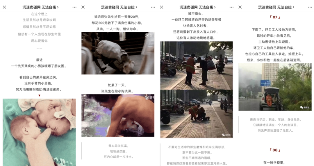 从「视觉志」的文章中,我们发现,内容多是围绕着新闻时事热点、围绕着生活百态,通过娓娓道来的故事叙说,传递着爱与温暖,传递着正能量。